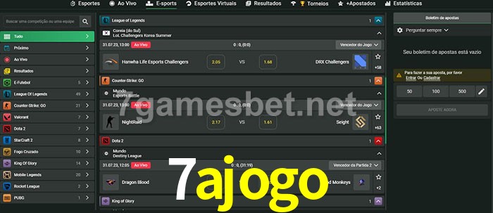 O 7ajogo oferece uma grande seleção de opções de apostas em e-sports com probabilidades competitivas